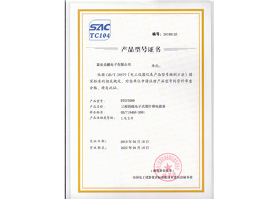 三相四線電子式預(yù)付費電能表產(chǎn)品型號證書